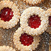 One plate of powdered shortbread cookies, sweetened with jeweled Sykon jam.