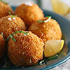 Crispy, golden brown balls filled with buttery crab legs and fluffy mashed vegetables, served with a sweet-and-sour sauce on the side