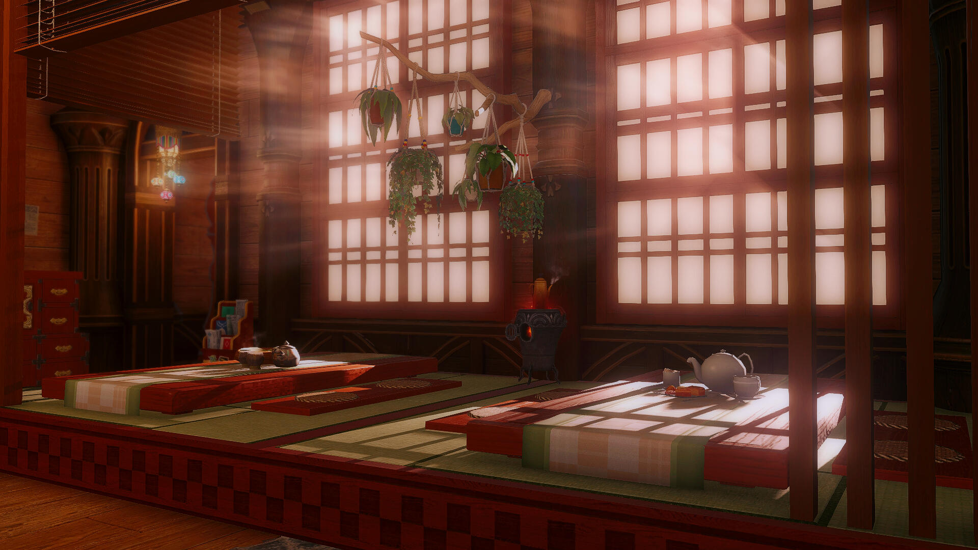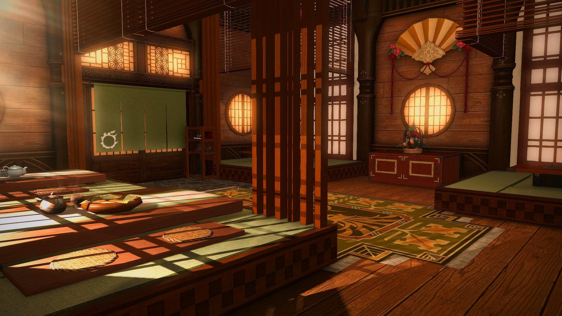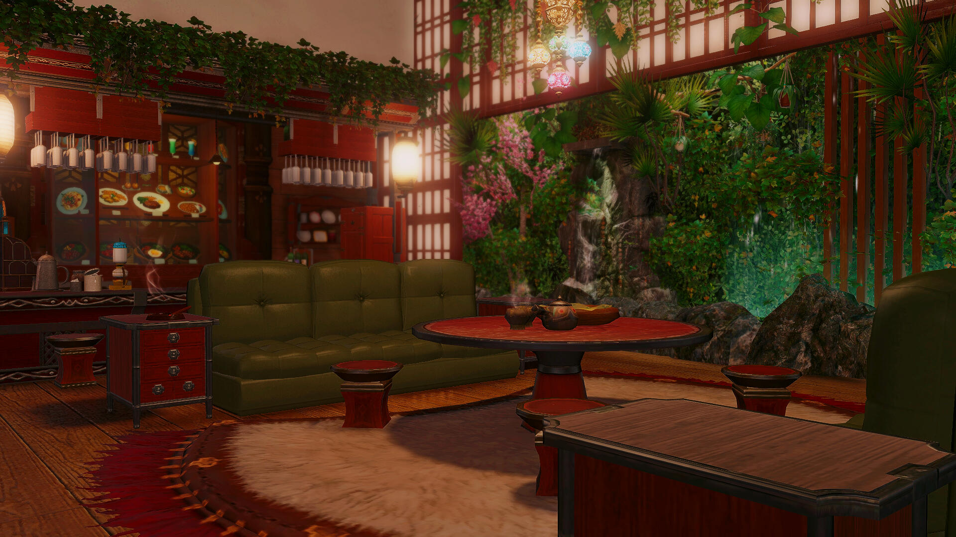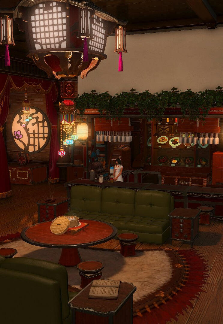 Established by the proprietress, Rihua Hong, as a café after the rousing success of her Far Eastern luxury bar and lounge, the Jade Window. The Persimmon Leaf aims to provide patrons with the same quality service, cuisine, and soothing atmosphere to escape the fast-moving day-to-day of every Eorzean.Descending from a long line of Nagxian geomancers and a clan of peerless seafarers from the Glass Ocean, the Lady of the House was educated in Thavnair where she took up the culinary arts before sailing westward to Eorzean shores.Although Limsa Lominsa has served as her home on Vylbrand for some time, the Jade Window—and now the Persimmon Leaf—was also opened in the city state of Gridania to not only be closest to nature, but to also serve as a safehaven free of discrimination where the flavors of the Near and Far East may be experienced by all.